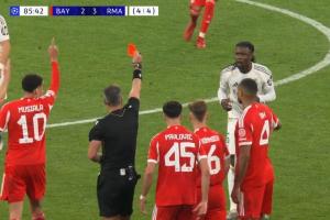 欧冠1/4决赛次回合,拜仁vs皇马,第86分钟,替补登场的卡马文加两黄变一红被罚下。卡马文加被罚下后拜仁连入两球,总比分6-4淘汰皇马。